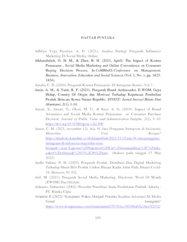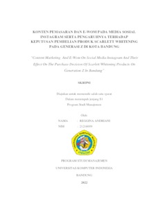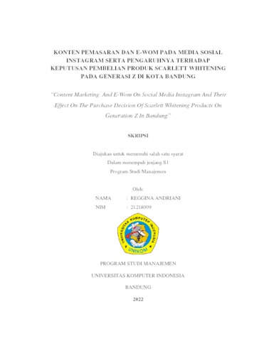 Andriani, Reggina (2022) Konten Pemasaran Dan E-Wom Pada Media Sosial Instagram Serta Pengaruhnya Terhadap Keputusan Pembelian Produk Scarlett Whitening Pada Generasi Z Di Kota Bandung. Other thesis, Universitas Komputer Indonesia.