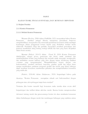 | Uncontrolled Keywords: | Konten Pemasaran, Electronic Word of Mouth, Keputusan Pembelian |