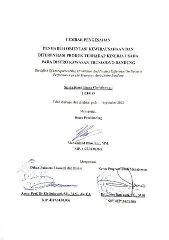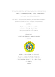 Christinawati, Salsha Riani Risana (2022) Pengaruh Orientasi Kewirausahaan Dan Diferensiasi Produk Terhadap Kinerja Usaha Pada Distro Kawasan Trunojoyo Bandung. Other thesis, Universitas Komputer Indonesia.