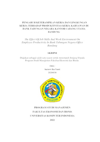 Yanti, Sarnovi Ika (2022) Pengaruh Keterampilan Kerja Dan Lingkungan Kerja Terhadap Produktivitas Kerja Karyawan Di Bank Tabungan Negara Kantor Cabang Utama Bandung. Other thesis, Universitas Komputer Indonesia.