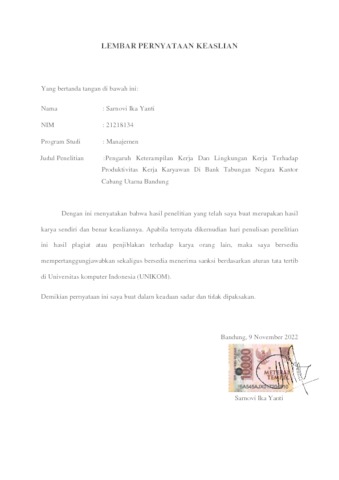 UNIKOM_SARNOVI IKA YANTI_LEMBAR PERNYATAAN KEASLIAN.pdf - Published Version