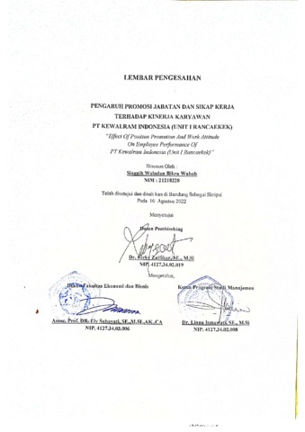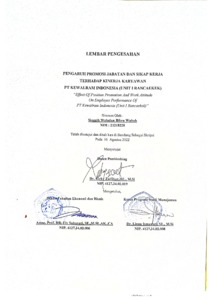 | Uncontrolled Keywords: | Promosi Jabatan, Sikap Kerja, dan Kinerja Karyawan. |