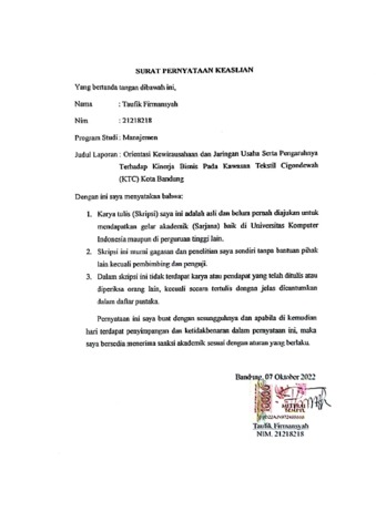 UNIKOM_TAUFIK FIRMANSYAH_SURAT PERNYATAAN ORISINALITAS.pdf - Published Version
