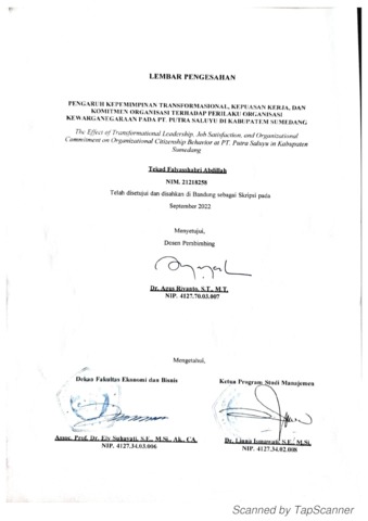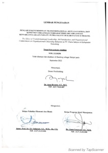 | Uncontrolled Keywords: | Kepemimpinan Transformasional, Kepuasan Kerja, Komitmen Organisasi, dan Perilaku Organisasi Kewarganegaraan. |