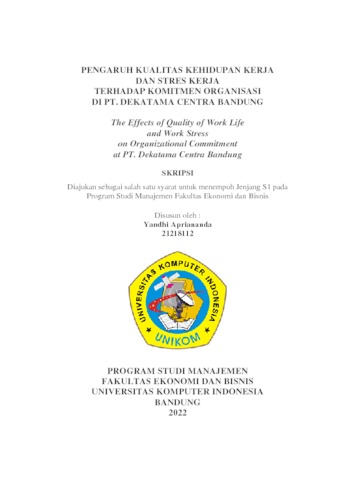 Apriananda, Yandhi (2022) Pengaruh Kualitas Kehidupan Kerja Dan Stres Kerja Terhadap Komitmen Organisasi Di Pt. Dekatama Centra Bandung. Other thesis, Universitas Komputer Indonesia.