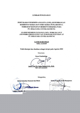 Darusman, Yandi (2022) Pertukaran Pemimpin-Anggota (Lmx), Keseimbangan Kehidupan Kerja Dan Stres Kerja Pengaruhnya Terhadap Keinginan Berhenti Bekerja Pada Pt. Dekatama Centra Bandung. Other thesis, Universitas Komputer Indonesia.