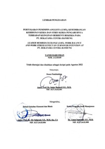 | Uncontrolled Keywords: | Pertukaran Pemimpin-Anggota (LMX), Keseimbangan Kehidupan Kerja, Stres Kerja, Keinginan Berhenti Bekerja, Perusahaan, Garmen |