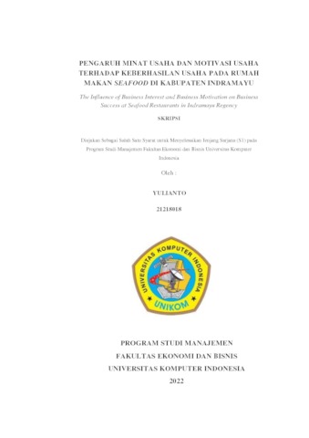 Yulianto, Yulianto (2022) Pengaruh Minat Usaha Dan Motivasi Usaha Terhadap Keberhasilan Usaha Pada Rumah Makan Seafood Di Kabupaten Indramayu. Other thesis, Universitas Komputer Indonesia.