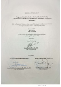 | Uncontrolled Keywords: | Minat Usaha, Motivasi Usaha, Keberhasilan Usaha. |