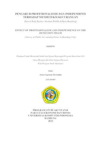 Merindha, Aline Engrasia (2022) Pengaruh Profesionalisme Dan Independensi Terhadap Mendeteksi Kecurangan. Other thesis, Universitas Komputer Indonesia.