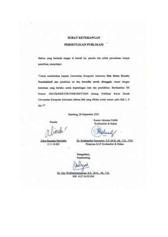 UNIKOM_ALINE ENGRASIA MERINDHA_SURAT PERSETUJUAN KETERANGAN PUBLIKASI.pdf - Published Version