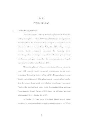 | Uncontrolled Keywords: | Pendapatan Asli Daerah, Dana Alokasi Umum, Dana Alokasi Khusus dan Belanja Modal. |