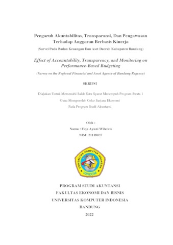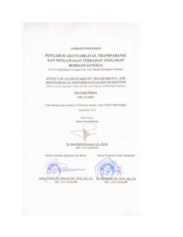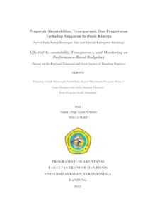Wibowo, Fiqa Ayuni (2022) Pengaruh Akuntabilitas, Transparansi, Dan Pengawasan Terhadap Anggaran Berbasis Kinerja (Survei Pada Badan Keuangan Dan Aset Daerah Kabupaten Bandung). Other thesis, Universitas Komputer Indonesia.