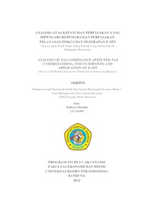Maulida, Nadiyya (2022) Analisis Atas Kepatuhan Perpajakan Yang Dipengaruhi Pemahaman Perpajakan, Pelayanan Fiskus Dan Penerapan E-Spt. Other thesis, Universitas Komputer Indonesia.