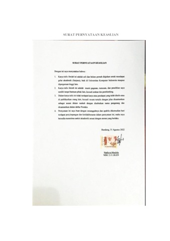 UNIKOM_NADIYYA MAULIDA_3.SURAT KEASLIAN.pdf - Published Version