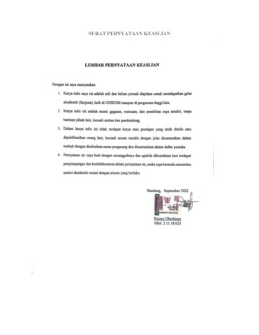 UNIKOM_Rosary Ohoitimur_Surat Pernyataan Keslian.pdf - Published Version