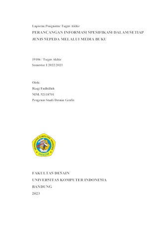 Fadhillah, Rizqi (2023) Perancangan Informasi Spesifikasi Dalam Setiap Jenis Sepeda Melalui Media Buku. Diploma thesis, Universitas Komputer Indonesia.
