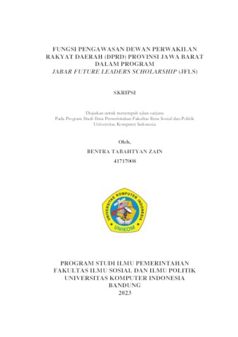 Zain, Bentra Tabahtyan (2023) Fungsi Pengawasan Dewan Perwakilan Rakyat Daerah (Dprd) Dalam Program Jabar Future Leaders Scholarship (Jfls). Other thesis, Universitas Komputer Indonesia.