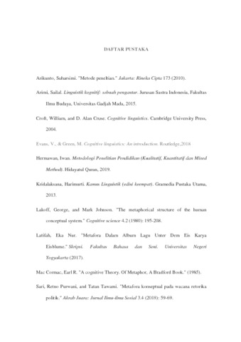 | Uncontrolled Keywords: | Semantik, Metafora, Konseptual, Lirik Lagu. |
