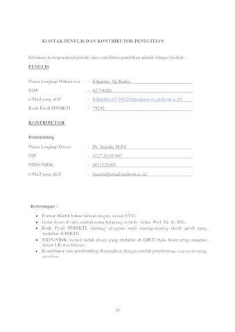UNIKOM_Eduardus Aji Badin. Lembar Kontak Penulis dan Kontributor Penelitian.pdf - Published Version