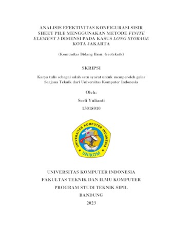 Yulianti, Serli (2023) Analisis Efektivitas Konfigurasi Sisir Sheet Pile Menggunakan Metode Finite Element 3 Dimensi Pada Kasus Long Storage Kota Jakarta. Other thesis, Universitas Komputer Indonesia.