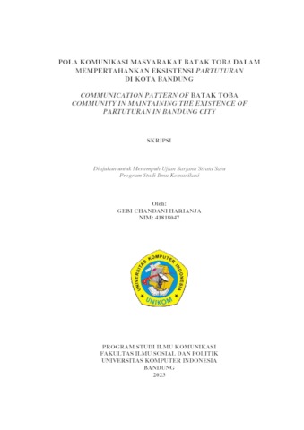 Harianja, Gebi Chandani (2023) Pola Komunikasi Masyarakat Batak Toba Dalam Mempertahankan Eksistensi Partuturan Di Kota Bandung. Other thesis, Universitas Komputer Indonesia.