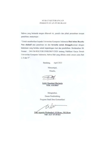 UNIKOM_GEBI CHANDANI HARIANJA_SURAT KETERANGAN PERSETUJUAN PUBLIKASI.pdf - Published Version