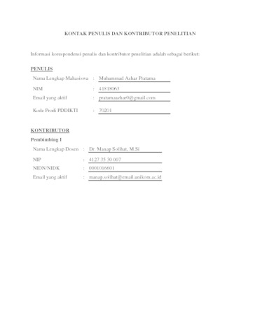 UNIKOM_41818063_Muhammad Azhar Pratama_KONTAK PENULIS DAN KONTRIBUTOR PENELITIAN.pdf - Published Version