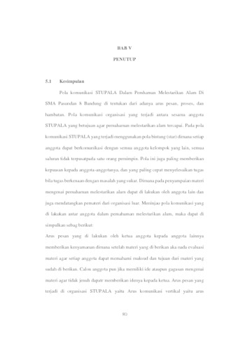 Tujuan penelitian ini untuk mengetahui bagaimana pola komunikasi organisasi STUPALA dalam pemahaman melestarikan alam dan lingkungan di SMA Pasundan 8 Bandung Penelitian ini membahas tentang model komunikasi dari arus pesan, proses komunikasi, dan hambatan komunikasi. Penelitian ini menggunakan metode penelitian kualitatif, unutk melakukan observasi, peneliti memilih 3 informan kunci dan 3 informan pendukung. Dalam penelitian ini memilih Teknik purposive sampling. Hasil penelitian ini adalah arus pesan yang terjadi antara anggota yaitu komunikasi Vertical dimana calon anggota dapat menyampaikan pesan kepada anggota penuh. Proses komunikasi anggota STUPALA cukup baik karena adanya feedback yang di hasilkan dari semua anggota. Hambtan yang terjadi antara anggota memiliki kesaam yaitu dengan jadwal materi yang bentrok dan juga materi yang sulit unutk di pahami. Kesimpulan pada anggota STUPALA dalam pemhaman melestarikan alam, setiap anggota sudah di tanamkan pada diri mengenai melestarikan alam dan lingkungan. Dan calon anggota yang ingin masuk ke STUPALA mereka di bombing agar dapat timnulnya rasa melestarikan alam dan lingkungan. Saran sebagai anggota yang bergerak di sekolah menengah atas dimana setiap anggotanya masih duduk di bangku SMA ekstrakulikuler ini memberikan pelajaran dan bekal untuk belajar berorganisasi.