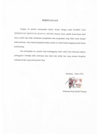 UNIKOM_REGI RASHIF RAZAQA_LEMBAR PERNYATAAN.pdf - Published Version