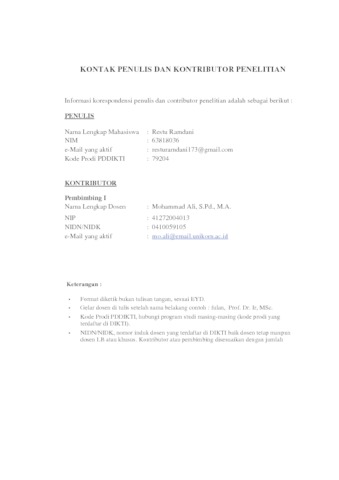 UNIKOM_RESTU RAMDANI_KONTAK PENULIS DAN KONTRIBUTOR PENELITIAN.pdf - Published Version