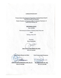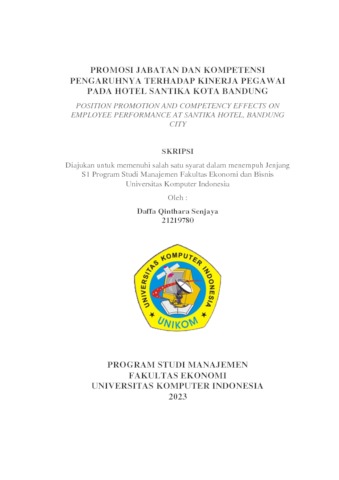 Senjaya, Daffa Qinthara (2023) Promosi Jabatan Dan Kompetensi Pengaruhnya Terhadap Kinerja Pegawai Pada Hotel Santika Kota Bandung. Other thesis, Universitas Komputer Indonesia.