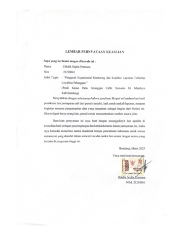 Permana, Dikdik Septia (2023) Pengaruh Experiential Marketing Dan Kualitas Layanan Terhadap Loyalitas Pelanggan. Other thesis, Universitas Komputer Indonesia.