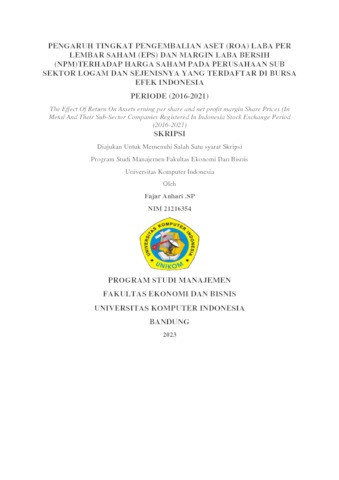 Anhari, Fajar (2023) Pengaruh Tingkat Pengembalian Aset (Roa) Laba Per Lembar Saham (Eps) Dan Margin Laba Bersih (Npm)Terhadap Harga Saham Pada Perusahaan Sub Sektor Logam Dan Sejenisnya Yang Terdaftar Di Bursa Efek Indonesia. Other thesis, Universitas Komputer Indonesia.