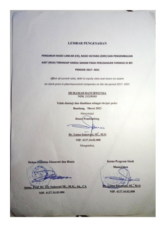 Danurwenda, Muhamad (2023) Pengaruh Rasio Lancar (Cr), Rasio Hutang (Der) Dan Pengembalian Aset (Roa) Terhadap Harga Saham Pada Perusahaan Farmasi Di Bei Periode 2017- 2021. Other thesis, Universitas Komputer Indonesia.