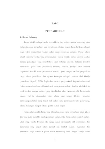 | Uncontrolled Keywords: | Rasio Lancar, Rasio Hutang, Pengembalian Aset dan Harga Saham |