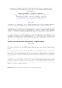 | Uncontrolled Keywords: | teknologi informasi, inovasi produk dan keunggulan bersaing |