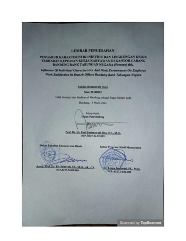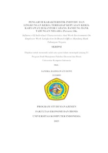 Dewi, Sandra Rahmawati (2023) Pengaruh Karakteristik Individu Dan Lingkungan Kerja Terhadap Kepuasan Kerja Karyawan Di Kantor Cabang Bandung Bank Tabungan Negara (Persero) Tbk. Other thesis, Universitas Komputer Indonesia.