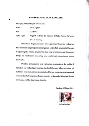 UNIKOM_Sylvia Septiani_Lembar Pernyataan Keaslian.pdf - Published Version