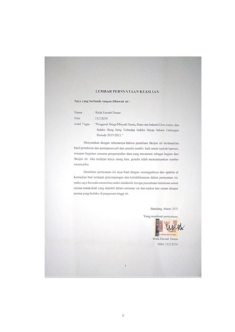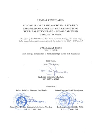 Deane, Wafa Fazzah (2023) Pengaruh Harga Minyak Dunia, Rata-Rata Industri Dow Jones, Dan Indeks Hang Seng Terhadap Indeks Harga Saham Gabungan Periode 2017-2021. Other thesis, Universitas Komputer Indonesia.