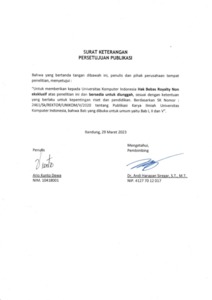 UNIKOM_ARIO KUNTO DEWA_SURAT KETERANGAN PERSETUJUAN PUBLIKASI.pdf - Published Version