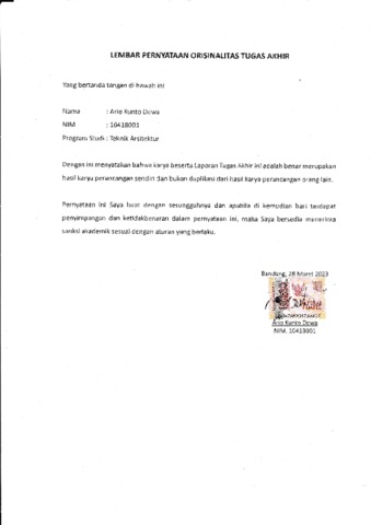 UNIKOM_ARIO KUNTO DEWA_LEMBAR KEASLIAN ATAU TIDAK PLAGIAT.pdf - Published Version
