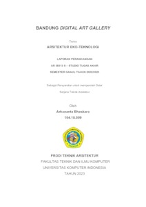 | Uncontrolled Keywords: | Arsitektur Eko-Teknologi, Galeri Seni Digital, Desain Komunikasi Visual |