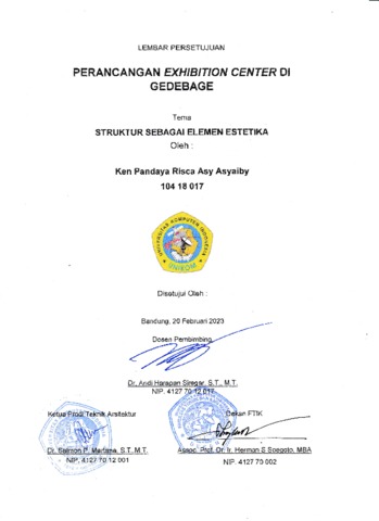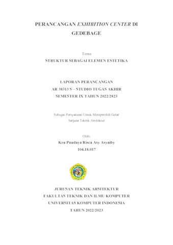 Asyaiby, Ken Pandaya Risca Asy (2023) Perancangan Exhibition Center Di Gedebage. Other thesis, Universitas Komputer Indonesia.