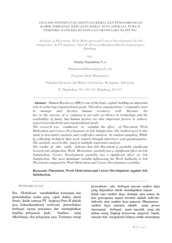 Nur Azizah, Maida Maulidina (2019) Analisis Penempatan, Motivasi Kerja Dan Pengembangan Karir Terhadap Kepuasan Kerja Pada Pt. Angkasa Pura Ii (Persero) Bandara Husein Sastranegara Bandung. Other thesis, Universitas Komputer Indonesia.