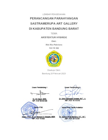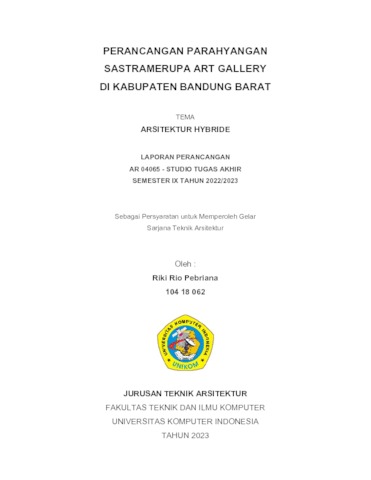Pebriana, Riki Rio (2023) Perancangan Parahyangan Sastramerupa Art Gallery Di Kabupaten Bandung Barat. Other thesis, Universitas Komputer Indonesia.
