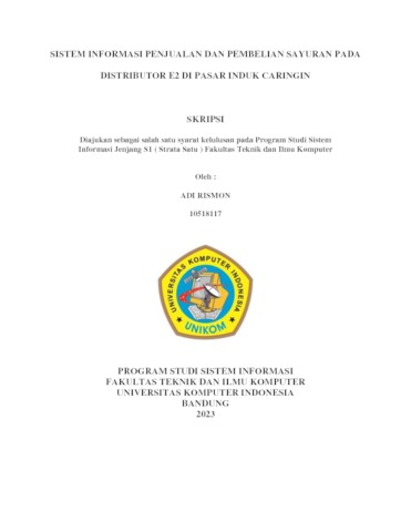 Rismon, Adi (2023) Sistem Informasi Penjualan Dan Pembelian Sayuran Pada Distributor E2 Di Pasar Induk Caringin. Other thesis, Universitas Komputer Indonesia.