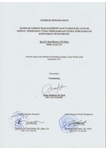 | Uncontrolled Keywords: | Green Management, Tanggung Jawab Perusahaan, Citra Perusahaan |