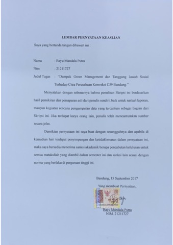 Putra, Bayu Mandala (2017) Dampak Green Management Dan Tanggung Jawab Sosial Perusahaan Terhadap Citra Perusahaan C59 Bandung. Other thesis, Universitas Komputer Indonesia.
