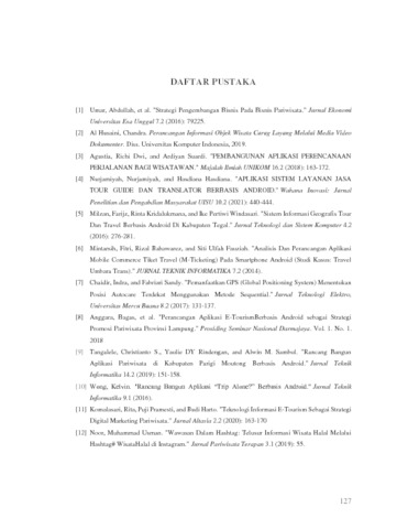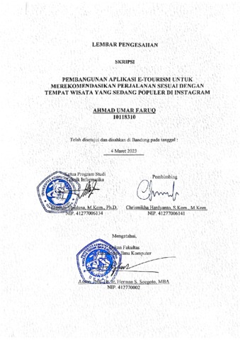 Faruq, Ahmad Umar (2023) Pembangunan Aplikasi E-Tourism Untuk Merekomendasikan Perjalanan Sesuai Dengan Tempat Wisata Yang Sedang Populer Di Instagram. Other thesis, Universitas Komputer Indonesia.